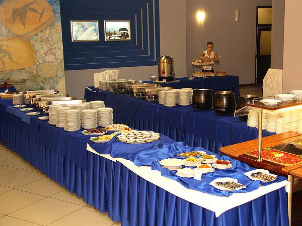 Ресторан "Олимпийский". В период с января по 10 июля и с октября по декабрь – питание комплексное, диетическое. В период с 1 июня по 10 октября – «шведский стол». Питание также включает в себя диетическое и детское меню. На территории пансионата работают также еще несколько кафе, баров и 2 ресторана.