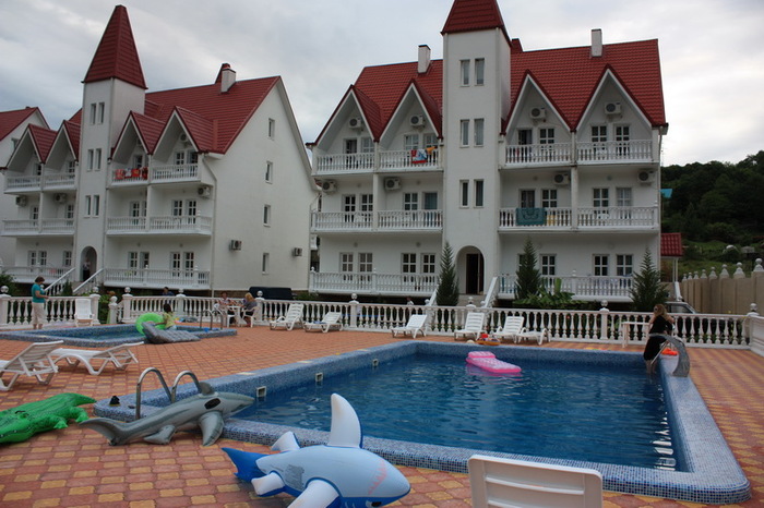 Пансионат семейного типа «Вея» расположен в живописном месте поселка Якорная щель, Лазаревского района города Сочи - на берегу горной реки, в яблоневом саду. Пансионат «Вея» представляет собой комплекс из нескольких зданий и может принять 150 человек одновременно. Пансионат «Вея» - идеальное место для тихого, размеренного отдыха. Пансионат имеет закрытую, охраняемую территорию, которая граничит с Сочинским Национальным парком. Рядом - лес, горы, персиковые и сливовые сады. Небольшая горная речка протекает прямо по территории пансионата. Городской пляж находится в 10-15 минутах ходьбы от пансионата. Номерной фонд пансионата "Вея" - 42 однокомнатных двухместных стандартных номера и 12 двухкомнатных Люксов. Номера оснащены балконами, санузлами, современной мебелью, холодильниками, спутниковым телевидением и кондиционерами. Возможна установка кресел-кроватей для детей по дополнительным заявкам. Санузлы оборудованы душевыми кабинами или ванной (в Люксах). На всех балконах имеются: стол, стулья, вешалка для сушки белья, освещение. Уборка номеров производится ежедневно. На территории пансионата функционируют: большая оборудованная детская площадка с батутом, горками и каруселями, детский бассейн, игровая комната, два открытых бассейна с подогревом, шезлонгами и зонтиками, кафе с баром и караоке, сауна, тренажерный зал, спортплощадки (волейбол, мини-футбол, бадминтон), бильярд, настольный теннис, шашки, шахматы, библиотека, оборудованные места для отдыха яблоневом саду, автостоянка, конференц-зал на 40-50 человек, доступ в Интернет, спутниковое ТВ, прачечная, массажный кабинет, парикмахерская, экскурсионное бюро.